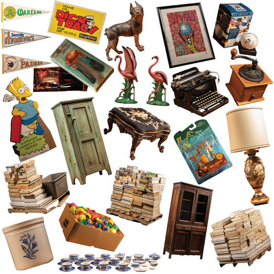 Join us for a 2-day, multi-estate auction featuring tons of Antiques, Vintage Pop Culture Collectibles, and Housewares! POP CULTURE highlights including sports trading cards (including multiple mixed card pallet lots); Beanie Baby collectibles; vintage Barbies and other collectible figurines; vintage train (including Lionel) and Hot Wheels collectibles; vintage Disney and Marvel collectibles; vintage posters and VHS tapes; games; and more! ANTIQUES/HOUSEHOLD COLLECTIBLES highlights include vintage Christmas ornaments; vintage vinyl records; musical instruments (including a violin); vintage and antique lighting and furniture, including a pie safe, hutch, and blanket chest; collectible bottles, tins, and jars; vintage collectible glassware and dishware; ashtrays; vintage advertising and prints; camera gear; and more!