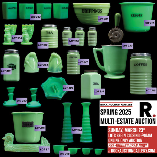 Pre-bidding for this event is now open! Lots will begin closing on Sunday, March 30, 2025 at 10:00 AM CT. Previewing is available by appointment. Please reach out to us at rockauctiongallery@gmail.com for more details.
