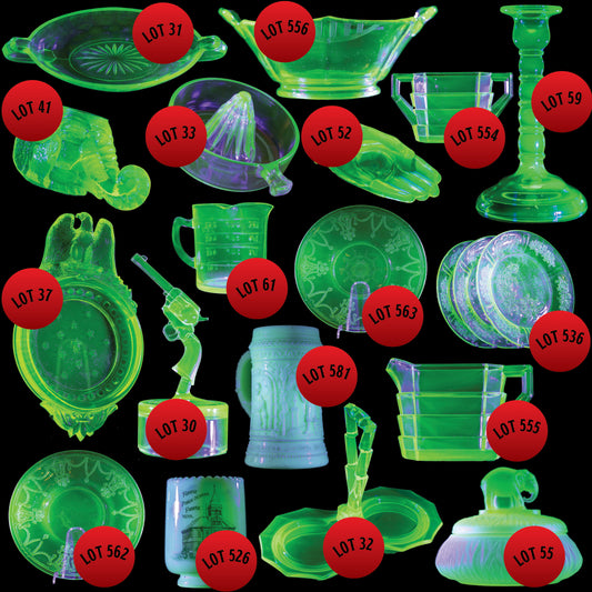 Also featured is a German sterling silver tea set; a sterling silver flatware set from Reed & Barton; collectible sports cards, including two 1986 Fleer Michael Jordans, a 1958 Topps All Star Mickey Mantle, and a 1952 Look N See Babe Ruth; antique and mid-century furniture, including an impressive 19th century Japanese Shadona Cabinet and a gorgeous mid-century burl credenza; breweriana, tobacciana, and Mobil Oil collectibles; and a large selection of uranium glass, carnival glass, and jadeite collectibles.